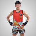 A gigantic Japanese Koi fish is printed on this Tank top to bring good luck to the fighter. The red background of the Tank top symbolizes strength and leadership, which enhances the meaning of Koi fish characteristics.