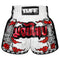 The classic-cut shorts are inspired by the golden era of Muay Thai in the 80s. The Chinese mystical dragon dashes through the white clouds. The retro-style boxing shorts also have a Chinese word that means “Dragon” printed on them.