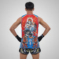 Elevate your training with the Mythic Protector Tank Top from TUFFPAYAK. This jersey features a masterpiece of Eastern icon, the guardian of wisdom riding a powerful celestial lion. Set against a vibrant red and sky-blue backdrop, this design represents the perfect balance of mental clarity and physical strength.
