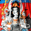 Harness the power of the enlightened mind with the TUFFPAYAK Monju "The Wisdom Lion" shorts. This design is inspired by Manju, the God of Transcendent Wisdom, who rides a mighty Lion and wields the Sword of Truth. These shorts are for the fighter who knows that the greatest strength lies in strategic focus and unwavering mental clarity.