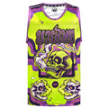 Bring a surge of energy to your next session with The Electric Skull Spirit Tank Top by TUFFPAYAK. This design is a bold fusion of modern streetwear and traditional power, featuring neon "Electric Skulls" on the front and twin purple tigers on the back. With its vibrant neon-green and deep purple palette, this jersey is designed for those who want to stand out and train with maximum intensity.