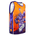 Unleash explosive power with The Mythic Titan Strike Tank Top by TUFFPAYAK. This high-energy design features a legendary guardian giant captured in a dynamic striking pose, set against a bold purple and electric orange backdrop. Combining ancient lions iconography with a modern twist, this jersey is built for those who train with maximum intensity.