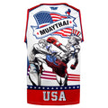 Step into the ring with a classic spirit in the Uncle Sam Glory Tank Top by TUFFPAYAK. This design features a retro-inspired Uncle Sam ready for combat, sporting Muay Thai hand wraps and traditional Muay Thai gear. Set against a bold red, white, and blue backdrop, this jersey is a tribute to those who train with heart, discipline, and a patriot's fire.